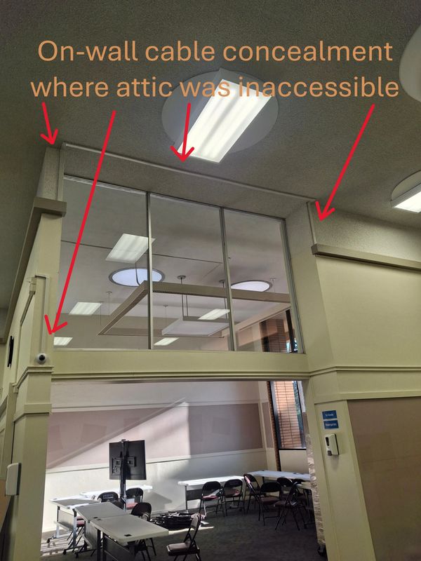 25' off the ground, required 100'+ run into an attic with conduit.